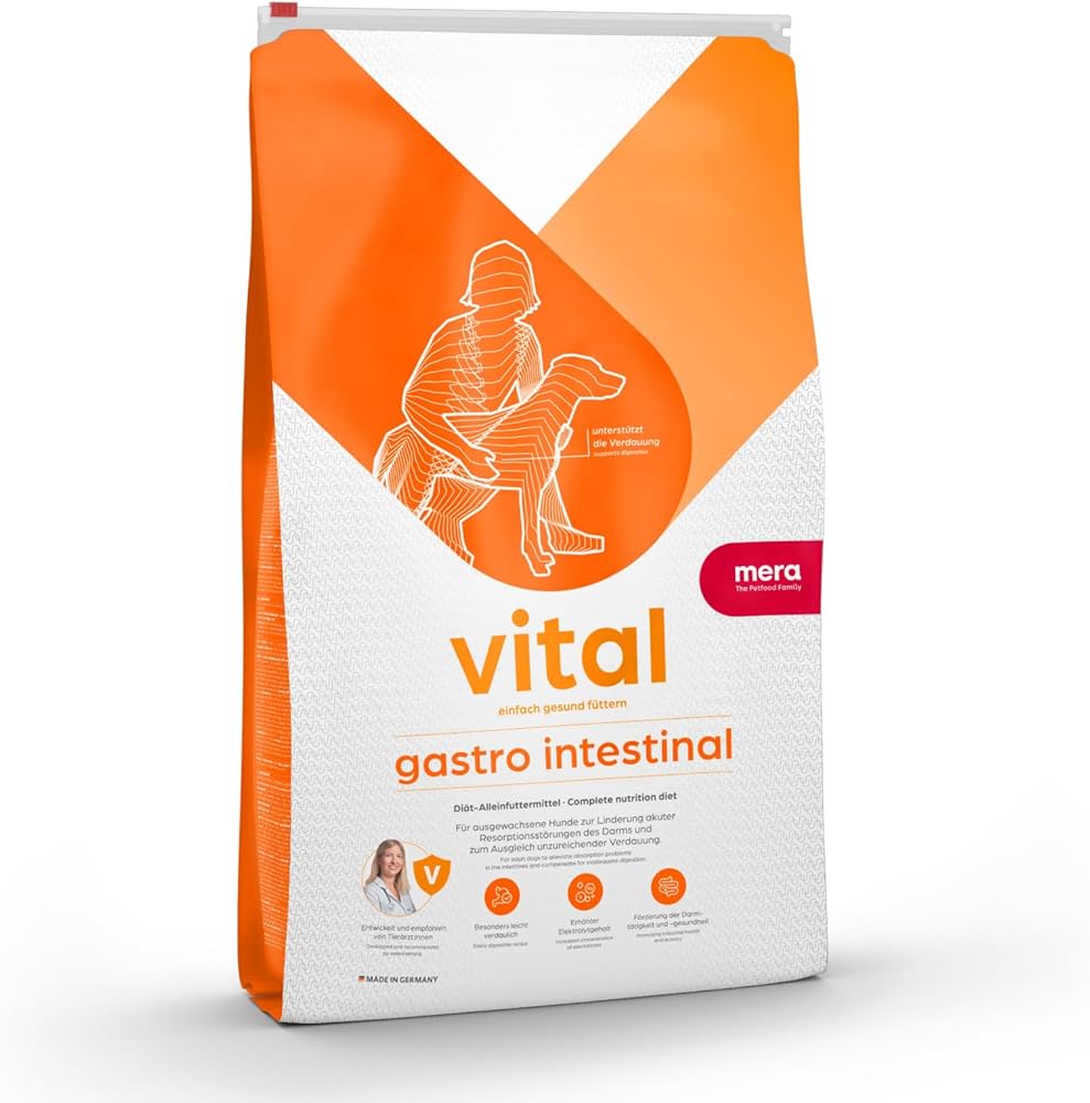 MERA Gastro Intestinal Dog Food – 3 KG is crafted to support dogs with digestive sensitivities and gastrointestinal issues. Made with easily digestible ingredients, it helps reduce digestive stress while promoting nutrient absorption and gut balance. The formula contains prebiotics, high-quality proteins, and selected carbohydrates to maintain intestinal health and overall vitality. Enriched with essential vitamins and minerals, it strengthens the immune system and supports long-term digestive wellness. Ideal for dogs with sensitive stomachs or dietary intolerances, MERA Gastro Intestinal provides gentle, effective nutrition for a happier, healthier life.